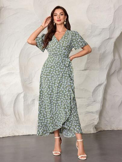 Modelyn 法式束腰印花长裙 - 綠色 - 查看 1