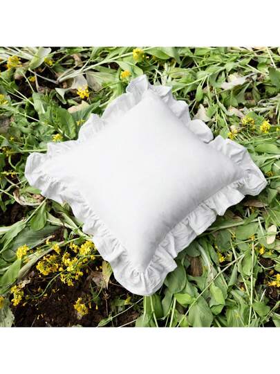 帶有褶邊的清新、簡單、時尚枕套,簡單純色的公主風格坐墊套(不包括枕頭核心) - 白色 - 查看 1