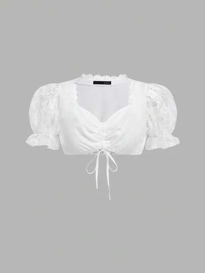 Fairmaia 传统德国抽绳领带褶饰刺绣拼布泡泡袖女式连衣裙,适合啤酒节和万圣节 - 白色 - 查看 1