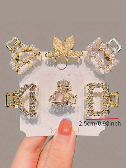 3-10 件女士金属和水钻发夹,优雅发夹,时尚配饰 - 彩色 - 查看 1