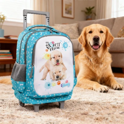Kids Fashion Rolling Backpack, 18 Inch Double Handle Laptop Backpack, Plane Bag, Luggage, School Supplies, Durable With Waterproof Material, Shoulder Drop, Concealed Pockets And Wheel Cover, Big Storage Capacity, Great For Boys And Girls School, College, Vacation, Trip Use, Travel Bag With Wheels, Fruits, Cat And Dog Prints, Best Christmas Gifts For Kids, Free Shipping And Hot - 藍色 - 查看 6