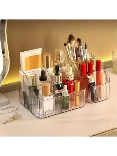 1 个化妆品收纳盒,透明亚克力储物架,化妆品收纳架,收纳篮,桌面收纳盒,化妆刷架,香水收纳盒,透明塑料储物箱,适用于假日海滩、浴室收纳、卧室收纳,大容量 - 無色 - 查看 10