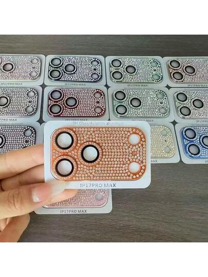 全钻相机镜头膜适用于 Apple 17 系列、17 Air、17 Pro、17 Pro Max,金属 9H 钢化玻璃相机镜头保护膜,高清透明 - 橘色 - 查看 1