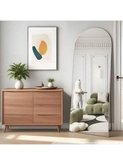 Full Length Mirror, 56"X16" Arch Floor Mirrors With Stand, White Arched Full Body Standing Or Leaning Mirror For Bedroom, Living Room,24331208