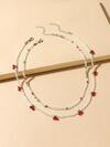 3 件时尚精致心形和蝴蝶吊坠串珠项链套装,时尚派对配饰和女孩生日礼物