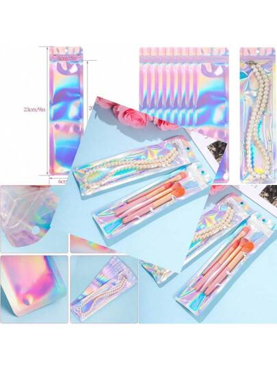 YQ 100 Pcs Pen Packaging Bags For Small Business Resealable Foil Pouch Bag For Pens Holographic Ziplock Smell Proof Storage Bags For Packaging Lipgloss Jewelry Cosmetic Candy 2.4x9 Inch YQ - 銀色 - 查看 6