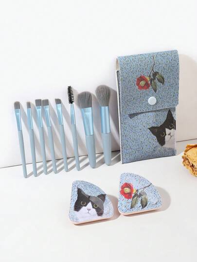 GALLERY  K 可愛奶牛,貓&花朵設計化妝刷套裝 - 彩色 - 查看 4
