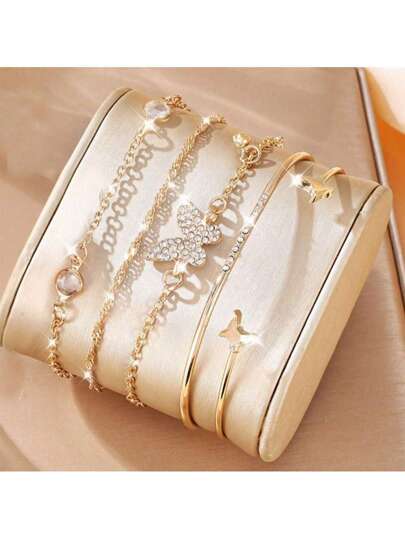 GARMEND 5 件套极简波西米亚风格蝴蝶结手链套装 - C - 查看 5