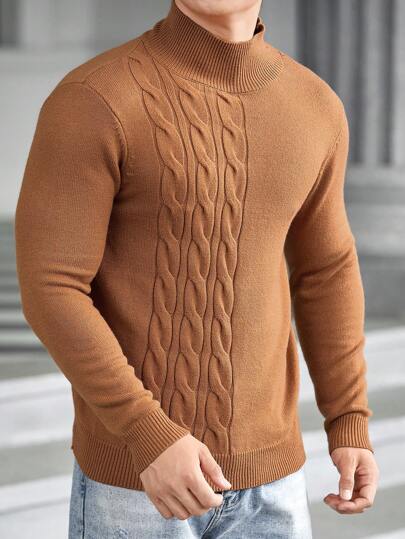 GENTILAND 男士小高領麻花編織套頭毛衣