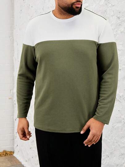 GENTILAND 大碼男士拼色針織休閒拼布t恤