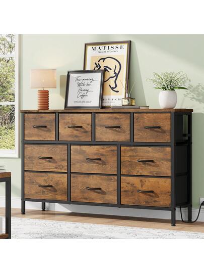 GIKPAL 10 Drawer Dresser For Bedroom, Dresser TV Stand With Power Outlets, Entertainment Center Chest Of Drawers For 55'' Long TV, Wide Fabric Dresser For Storage And Organization, Tiger Stripe