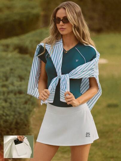GLOWMODE FeatherFit™-Air 顺滑透气,如黄油般柔软,速干吸汗,撞色滚边,内置短裤,防滑手柄,网球刺绣,A字迷你裙,适合网球、高尔夫、匹克球等运动,日常休闲穿着。 - 白色 - 查看 4