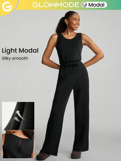 GLOWMODE 輕盈恬靜modal可開背可調束口口袋連身褲,日常舒適休憩裝 - 黑色 - 查看 1