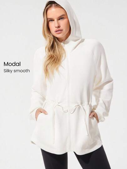 GLOWMODE Softserene 莫代尔休闲 MVP 宽松版型丝滑透气齐臀拉链连帽夹克日常休闲装 - 白色 - 查看 1