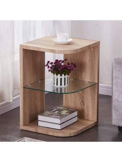 GOLDFAN Glass Wood Side Table End Table Small Coffee Table Lamp Sofa Bedside Table With Storage For Living Room Bed Room Oak Finish - 橡木飾面1 - 查看 1