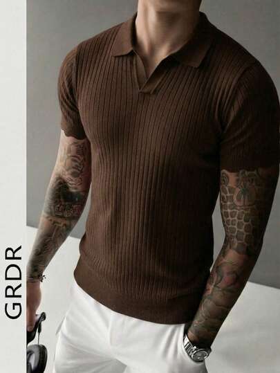 GRDR 男士夏季针织Polo衫,纯色短袖针织领,适合夏季外出穿着,时尚穿搭必备单品