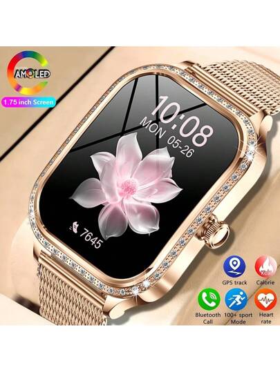 GUHUAVMI 女士奢华智能手表,1.75 英寸(4.45 厘米)高清曲面屏,带蓝牙通话、自定义面部表盘、信息推送、音乐、多运动模式手表、女性生理健康、睡眠监测健身追踪器手环、IP68 防水智能手表,适用于 Android IOS,是送给女朋友、母亲、妻子或姐妹的最佳礼物 - 彩色 - 查看 1