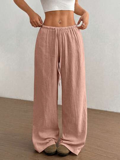 Flirla 女式超低腰休闲直筒棉质裤 - 粉色 - 查看 1