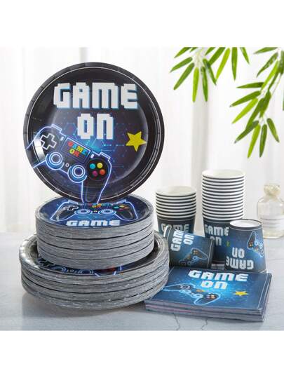 游戏控制器一次性盘子和餐巾 - 7/9 英寸游戏控制器一次性盘子、餐巾、杯子套装,海军蓝控制器一次性纸盘、餐巾、杯子,用于游戏派对装饰和用品 - 彩色 - 查看 5