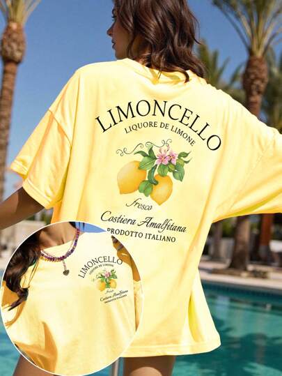 ReShift 夏季加大休闲女式圆领字母水果印花T恤 - 粉色 - 查看 1