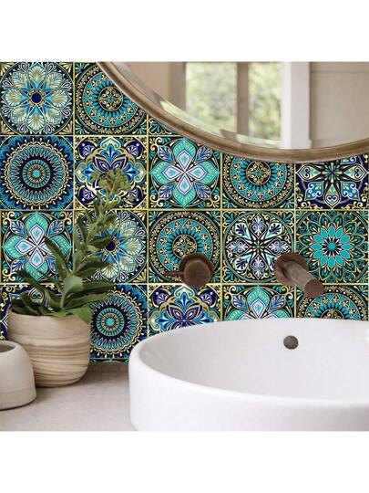 10 件/20 件彩色曼陀罗花卉图案瓷砖贴纸,自粘防水防油 PVC 墙纸 - 彩色 - 查看 10