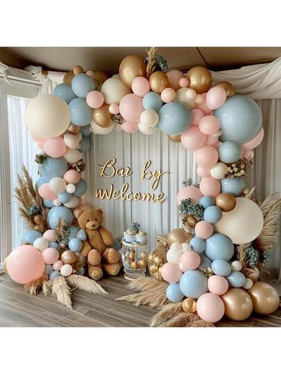 性别揭晓派对主题气球拱门套装,包含粉色、蓝色、沙色和白色乳胶气球,适用于婴儿派对、生日派对装饰用品 - 卡其色 - 查看 14