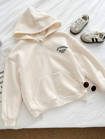 Genkimix Kids 女童针织保暖内衬休闲前拉链连帽衫,带英文字母印花,时尚日常、返校、百搭场合皆宜