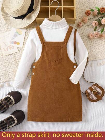 Genkimix Kids 女小童1入組補丁貼口袋背帶洋裝 - 棕色 - 查看 1