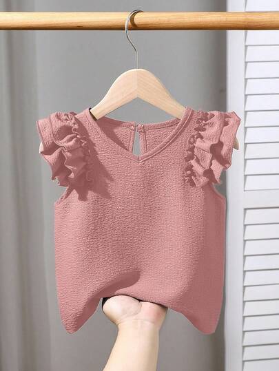 Genkimix Kids 女童纹理面料休闲T恤,带荷叶袖