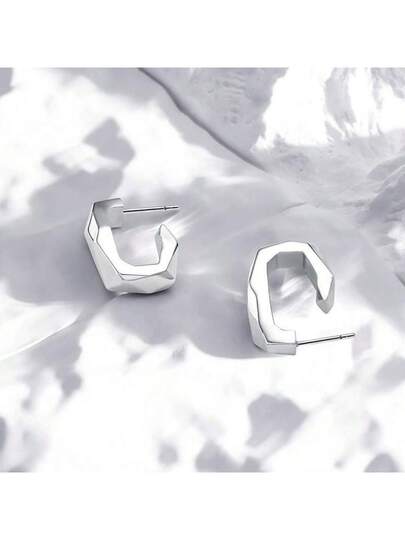 女士幾何設計耳釘,2022 年新款簡約純銀耳釘,風格不尋常,具有高級美感