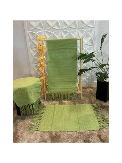 Geometric Kitchen Runner Kit 3 Pieces Excellent Quality Thick Fabric Knotted Loom - 純綠色 - 查看 1