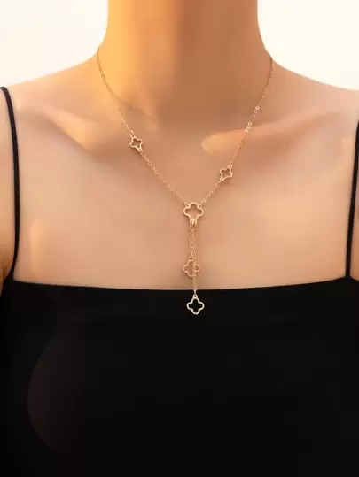 几何镂空三叶草形状吊坠项链,返校或情人节礼物,派对项链,妈妈,母亲,母亲节,礼物 - 金黃色 - 查看 1