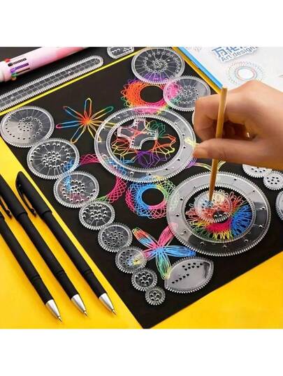 22 件/1 套绘图尺套装,释放您的创造潜力 - 透明魔法螺旋绘图模板 - 非常适合绘画和花卉尺子、返校绘画用品、儿童最佳返校礼物、万圣节和圣诞节礼物。 - 彩色 - 查看 10