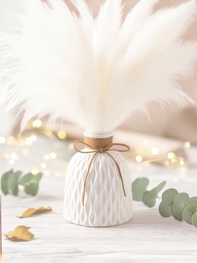 1束仿真丝花束家居装饰,粉色花朵配绿色叶子,适用于婚礼、生日、周年纪念派对、餐桌、客厅、卧室装饰,配玻璃花瓶 - 白色 - 查看 11