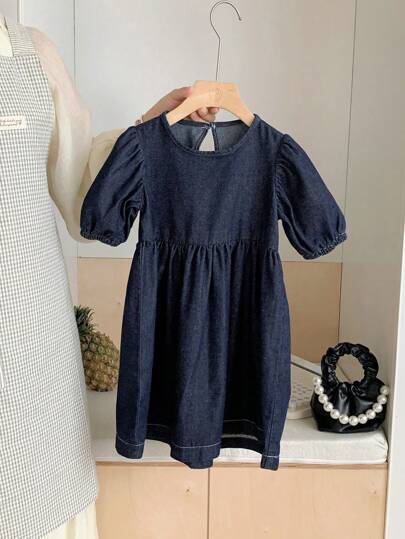 DAZY 女童牛仔连衣裙,年轻女孩秋装 - 深色水洗藍 - 查看 1
