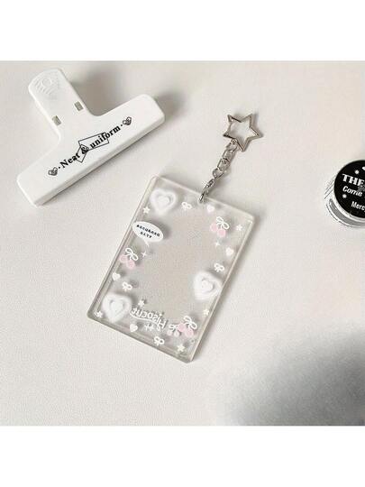 Girl Transparent Colorful Heart/Star 3inch Hard Card Holder ID Card Meal Card Bus Card Pendant Card Case Fan Girl Small Card Photo Protector