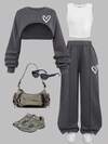 SHEIN 少女休闲日常纯色短款连帽衫、印花背心和工装裤三件套,秋冬季