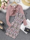 女孩高低下擺T恤和小碎花吊帶連衣裙