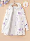 SHEIN Vintaside Kids Tween Girl 连帽加厚毛绒复古花卉中长款保暖夹克,秋冬,度假,夏季,旅行