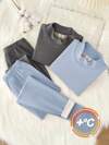 SHEIN 4 件套 Tween 女童舒适纯色柔软立领长袖上衣和紧身裤睡衣套装