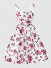 SHEIN 少女时尚碎花无袖短裙,适合外出、聚会和派对