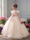 ALISA&LEO 少女亮片V领灯笼袖层叠A字薄纱正式连衣裙