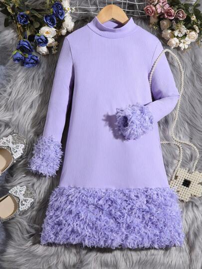 SHEIN 青少女優雅可愛拼接a字裙 - 紫色 - 查看 1