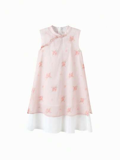 Balabala 女孩新中式連衣裙,2025夏季無袖連衣裙 - 紅色調 - 查看 1