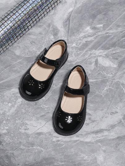 女童秋冬英倫風格時尚黑色低跟珍鞋,可愛的校園舞台鞋 - 黑色 - 查看 1
