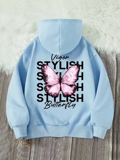 少女蝴蝶字母图案卫衣 - 淺藍色 - 查看 1