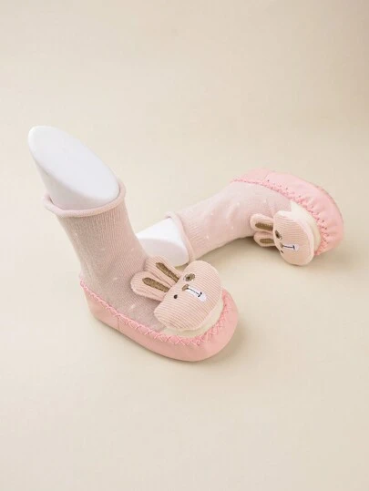 女孩可愛粉紅兔子卡通設計舒適簡約嬰兒平底休閒家居鞋(圖案隨機) - 粉色 - 查看 1