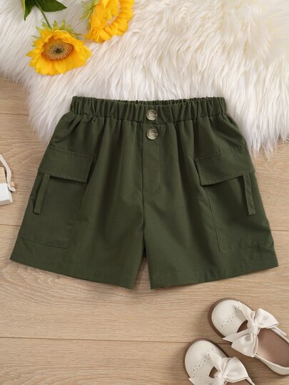 女孩側翻蓋口袋短褲 - 軍綠色 - 查看 1