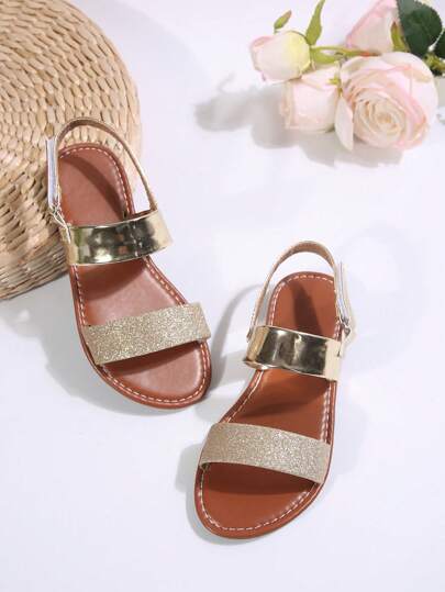 女童户外凉鞋夏季新款闪亮设计防滑时尚大方儿童平底沙滩凉鞋 - 金色 - 查看 1