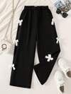 女童时尚松紧腰蝴蝶结装饰直筒裤,舒适柔软,女童休闲装,优雅百搭